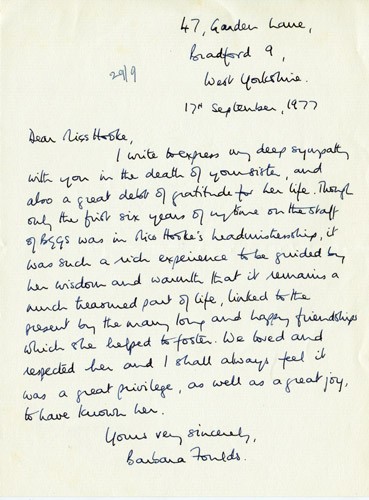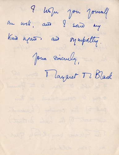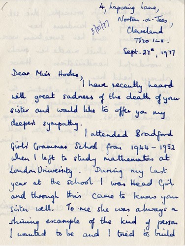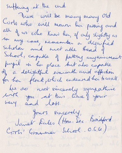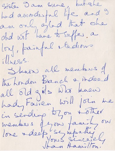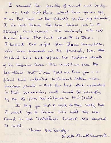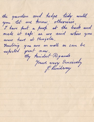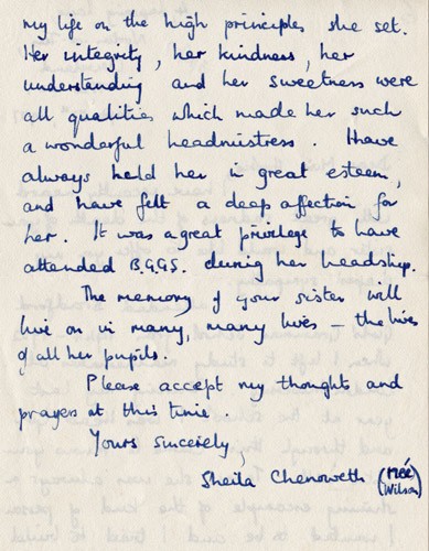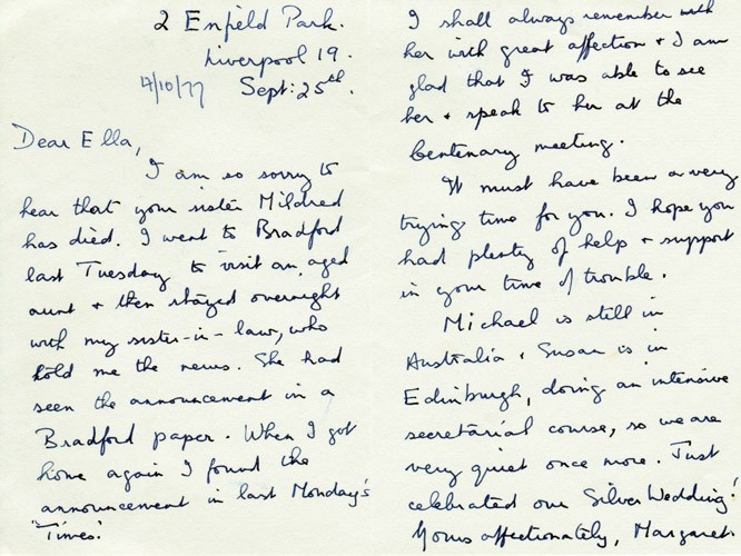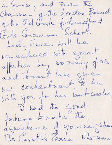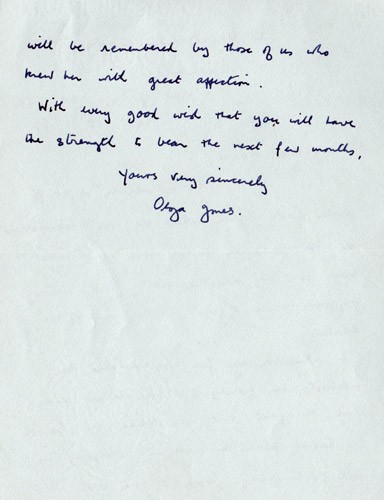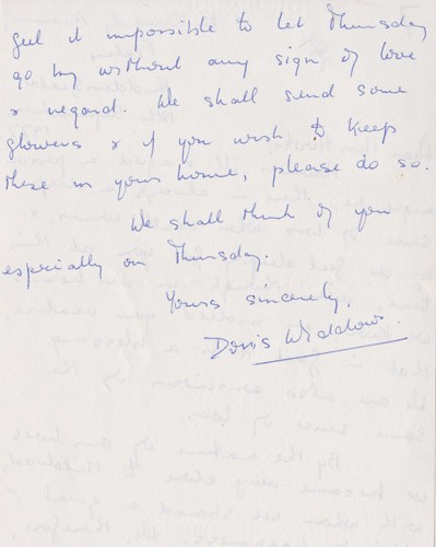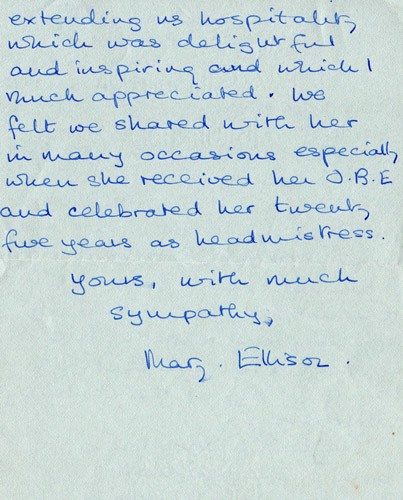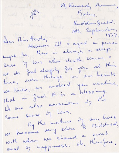 Below is an album of the letters. At the end is the order of service at her funeral and a letter of appreciation to George & John for their presence at the funeral, as close family members. Click the arrow on the right to read through them in turn.